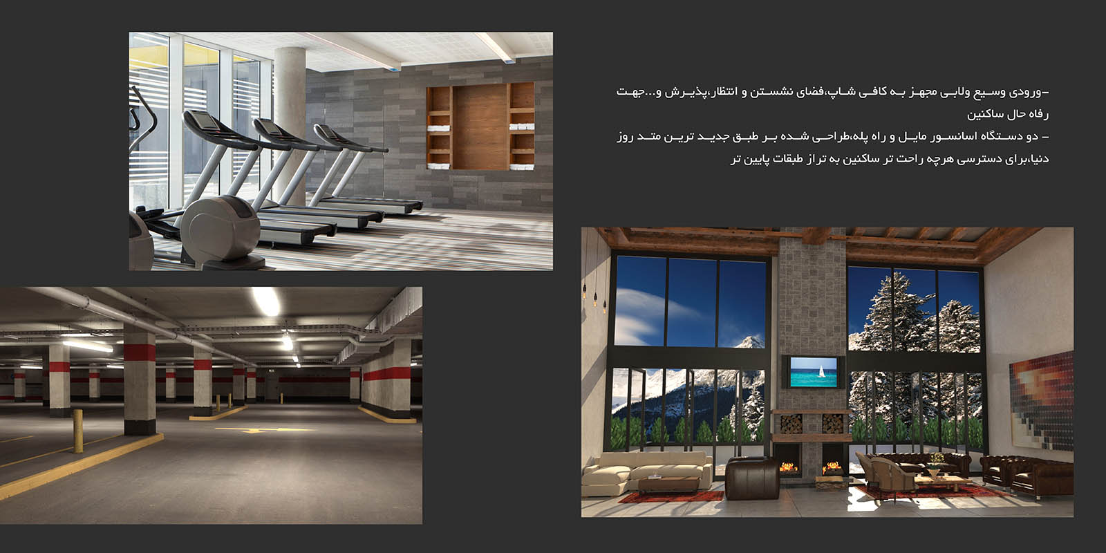Inspired by Shemshak beautiful mountains, design of Larci 1400 project defines stepped structures along the slope of the mountain. This unique design creates villa style units with large terraces making them look like series of “Villa-Terrace Apartments” on slope of the mountain with full views of the famous Shemshak ski slopes. With pollution being present most of the days of the year in Tehran, design of Larci 1400 has focused to bring home style living with all facilities to make this residence livable year around.